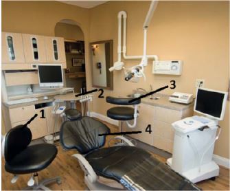 A dentist is examining a patient, as depicted in the figure. Which part of thr oral cavity is visible using the mouth mirror?