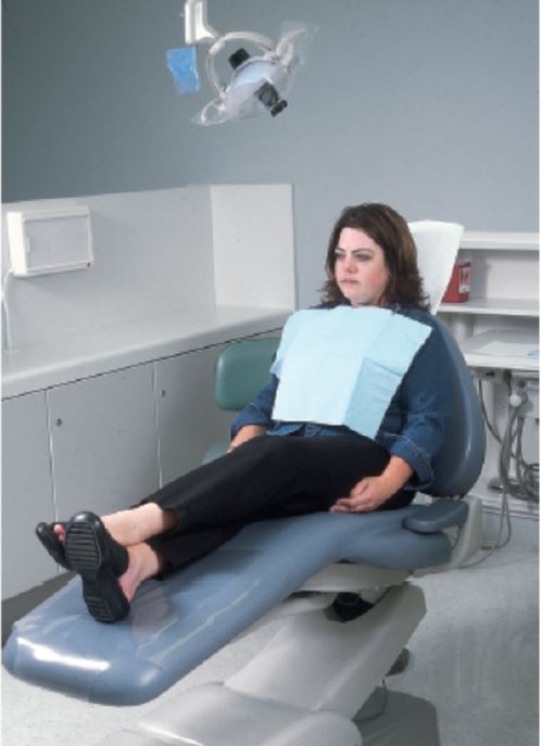 In which position is the patient seated on the dental chair?