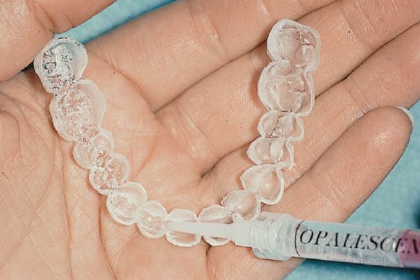 Used to hold teeth bleaching agent