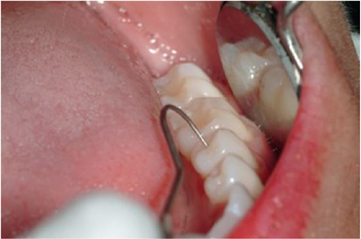 What is the function of the instrument that is placed on the tooth shown in the figure?