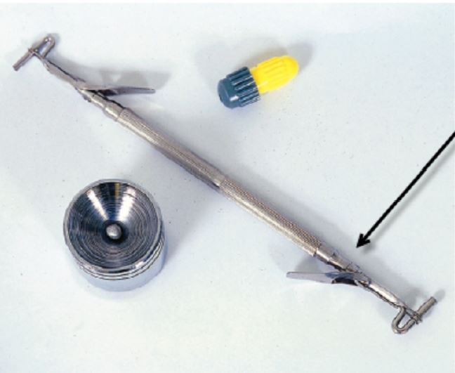 Which insrument is indicated by the arrow in the image?